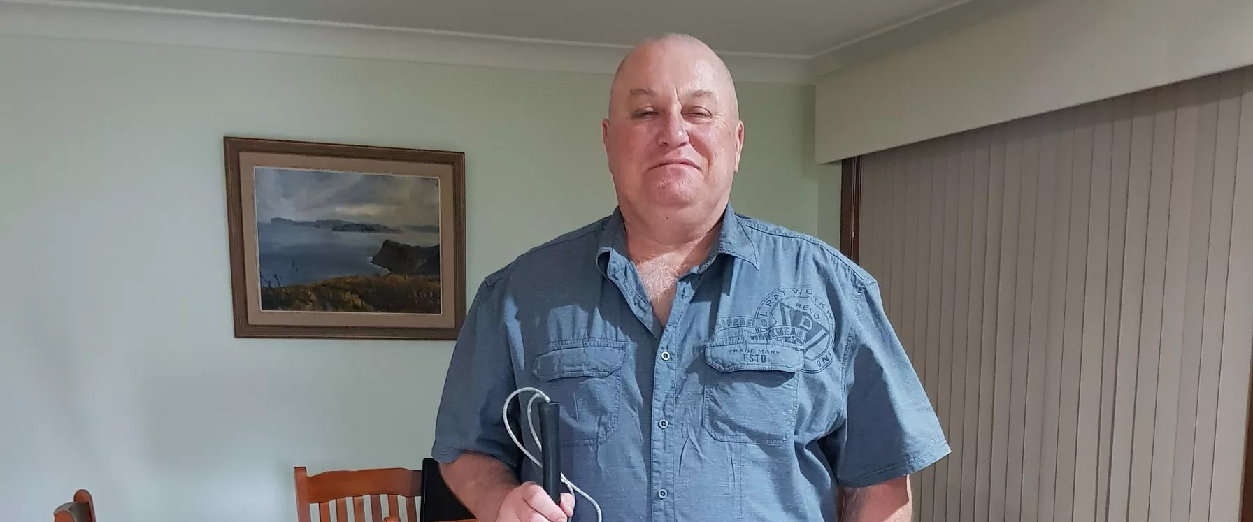“In about 1996 I showed signs of vision deterioration and some kidney disease, and I was diagnosed with diabetic retinopathy disease. Over the next couple of years I had over six thousand laser shots on each eye to stem the haemorrhaging of my retinas. That saved my central vision, but took my peripheral vision.”