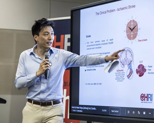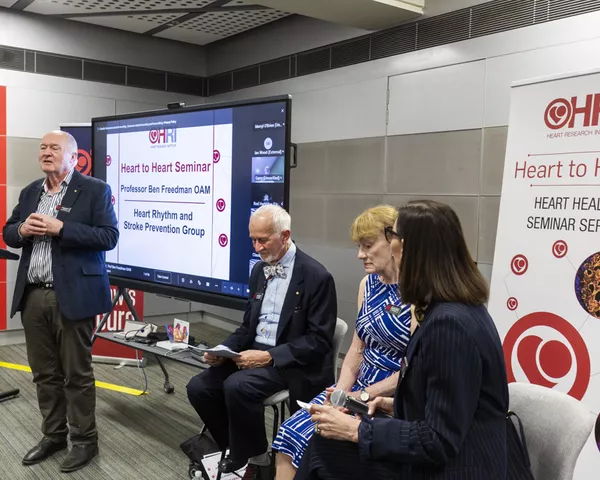 September brought Professor Ben Freedman OAM, Leader of HRI's Heart Rhythm and Stroke Prevention Group, who discussed his 40-year career focused on stroke prevention in atrial fibrillation (AF). AF is the most common abnormal heart rhythm, causing one in three strokes that are often severe and largely preventable. His team were the first in Australia and the world to use a handheld ECG device to test for AF and he leads the AF-SCREEN International Collaboration, which now has over 200 members from 40 countries. Stroke survivor Maryanne Bawden also shared her powerful story, illustrating the life-changing importance of Professor Freedman's research and the hope it brings to countless Australians.